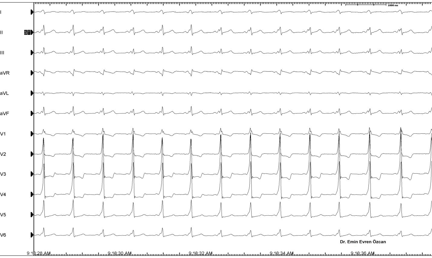sırasında venrikül yanıtları çok hızlı olabilir, nadir durumlarda VF’yeneden olabilir (şekil 6).Bu mekanizma ile senkop veya ani ölüm meydana gelebilir.